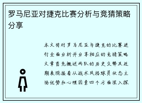 本文将对韩国U19青年队与卡塔尔U19球队之间的精彩赛事进行全面回顾与分析。首先,文章将简要介绍两支球队的历史背景和近期状态。接着,将从战术安排、球员表现、比赛进程及结果分析等四个方面深入探讨这场比赛的亮点与关键因素。通过详细的数据和实例,力求呈现出一场高水平青少年足球赛事的全貌,为读者提供生动而全面的理解。 1、两队背景及近期状态 韩国U19青年队在亚洲足球界享有盛誉,以其技术流畅和团队配合著...