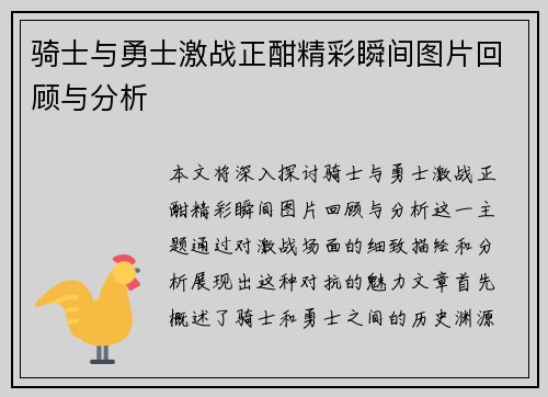 本文旨在深入探讨迪康塞普森的对决分析及其在比赛中的战术运用。通过对迪康塞普森的战术特点、心理战术、团队配合以及应变能力四个方面进行详细阐述,分析其在实际比赛中的表现和效果。首先,从战术特点入手,揭示迪康塞普森如何通过独特的技术风格影响比赛进程;接着,讨论他的心理战术如何帮助他在关键时刻保持优势;然后,探讨团队配合的重要性以及他如何与队友形成有效协作;最后,分析他的应变能力是如何让他在复杂多变的比赛...