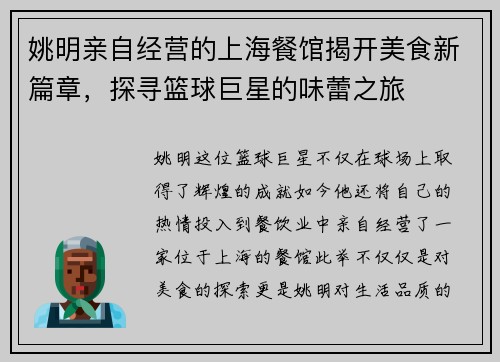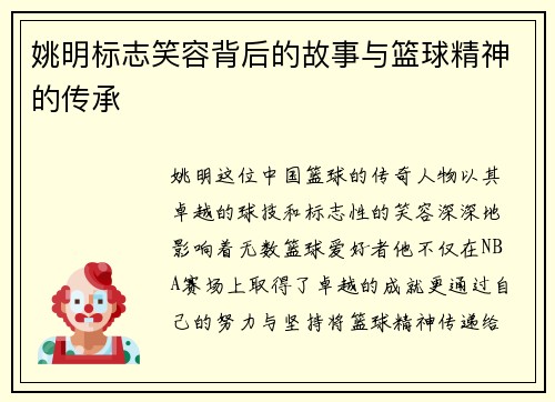 姚明作为中国篮球的代表性人物,不仅在赛场上取得了卓越的成就,也在退役后积极参与社会活动,影响着年轻一代。近期,他以特别嘉宾身份出席了一场关于篮球与人生的主题活动。在活动中,姚明分享了自己的篮球经历和人生感悟,引发了现场观众的热烈讨论。通过回顾自身职业生涯中的起伏和挑战,他传达了坚持、努力与梦想的重要性。这次活动不仅让人们重新认识了姚明,更激励了许多年轻人追逐自己的梦想。同时,姚明也强调团队精神和社...
